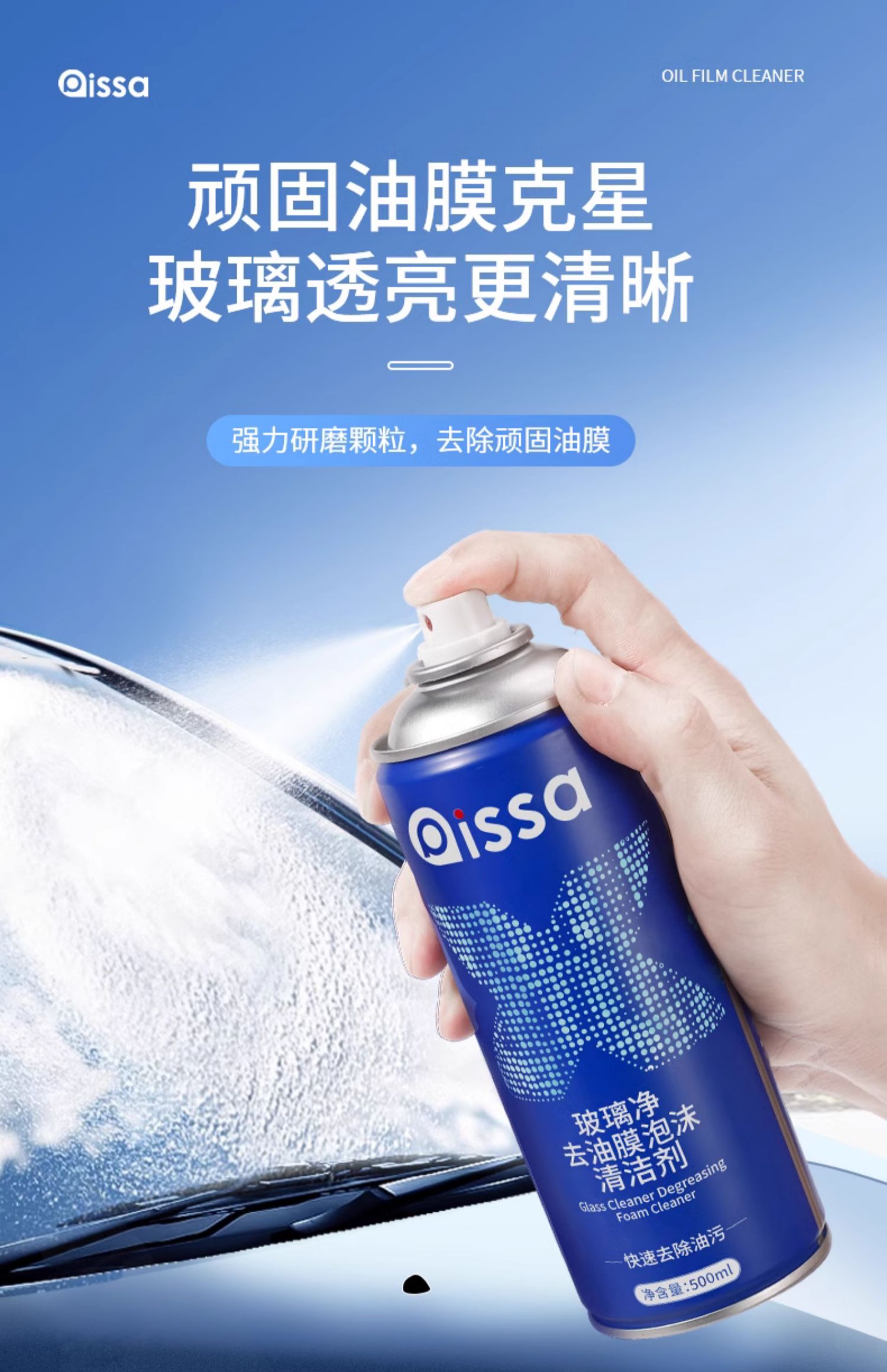 汽车玻璃油膜清洁剂去除剂前挡风玻璃强力去油污泡沫去油膜清洗剂